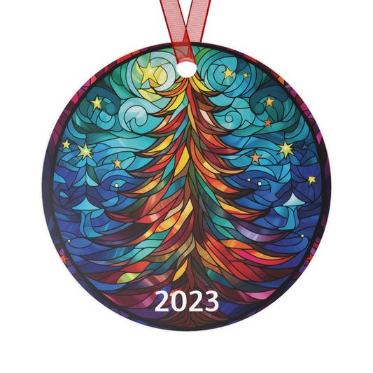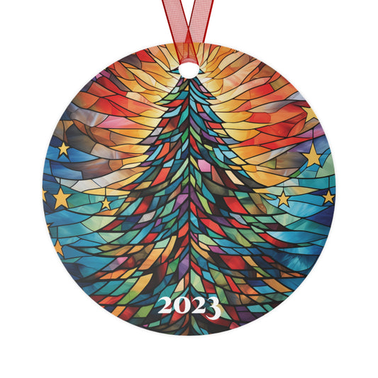 Christmas Tree Stained Glass Style Ornament Lightweight Shaterproof Metal Ornaments Christmas Ornament Exchange Christmas Tree 2023 Ornament