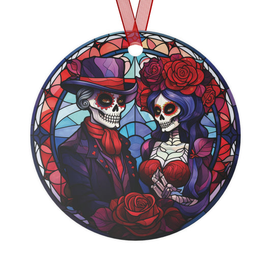 Dia De Los Muertos Stained Glass Style Ornament Lightweight Shaterproof Metal Ornaments Christmas Ornament Exchange Christmas Dead Ornament