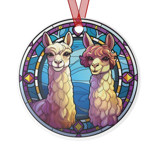 Lovable Llamas Alpacas Stained Glass Style Ornament Lightweight Shaterproof Metal Ornaments Christmas Ornament Exchange Decoration Christmas