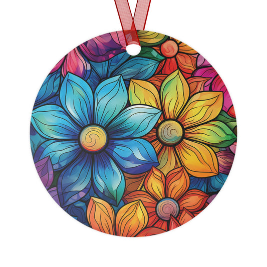 Christmas Flowers Rainbow Stained Glass Style Ornament Lightweight Shaterproof Metal Ornament