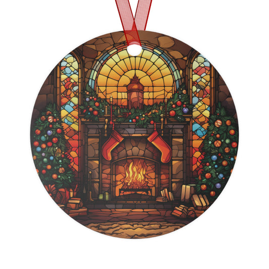 Cozy Christmas Fireplace Stained Glass Style Ornament Lightweight Shaterproof Metal Ornaments Christmas Ornament Exchange Decoration Gift