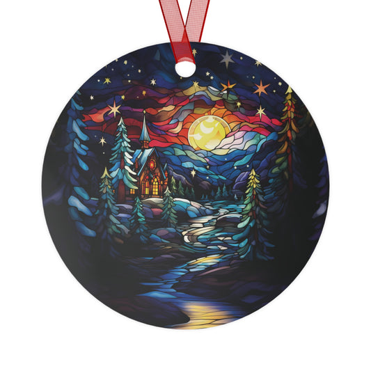 Gorgeous Stained Glass Style Christmas Night Ornament Lightweight Shaterproof Metal Ornaments Christmas Ornament Exchange Decoration Gift