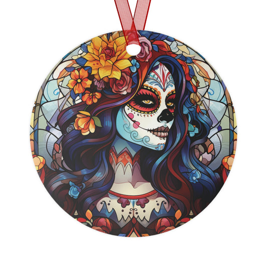 Dia De Los Muertos Stained Glass Style Ornament Lightweight Shaterproof Metal Ornaments Christmas Ornament Exchange Christmas Dead Ornament