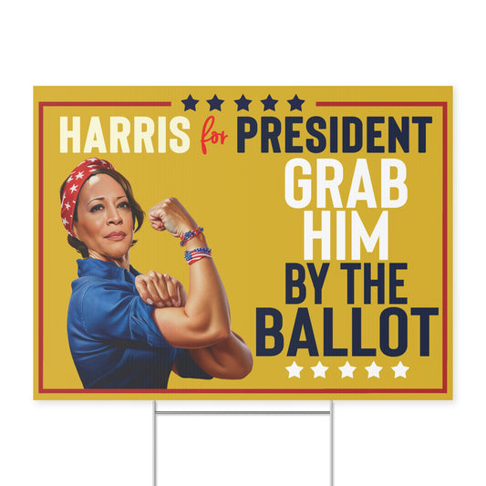 Grab Him By the Ballot, Harris for President, Double Sided Yard Sign w Stand, Kamala Yard Sign, Lawn Sign 18" x 24", Harris Walz Campaign Sign
