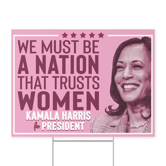 We Must Be a Nation That Trusts Women, Kamala Harris Lawn Sign, Double Sided Yard Sign with Stand, Kamala Yard Sign, Lawn Sign 18" x 24"