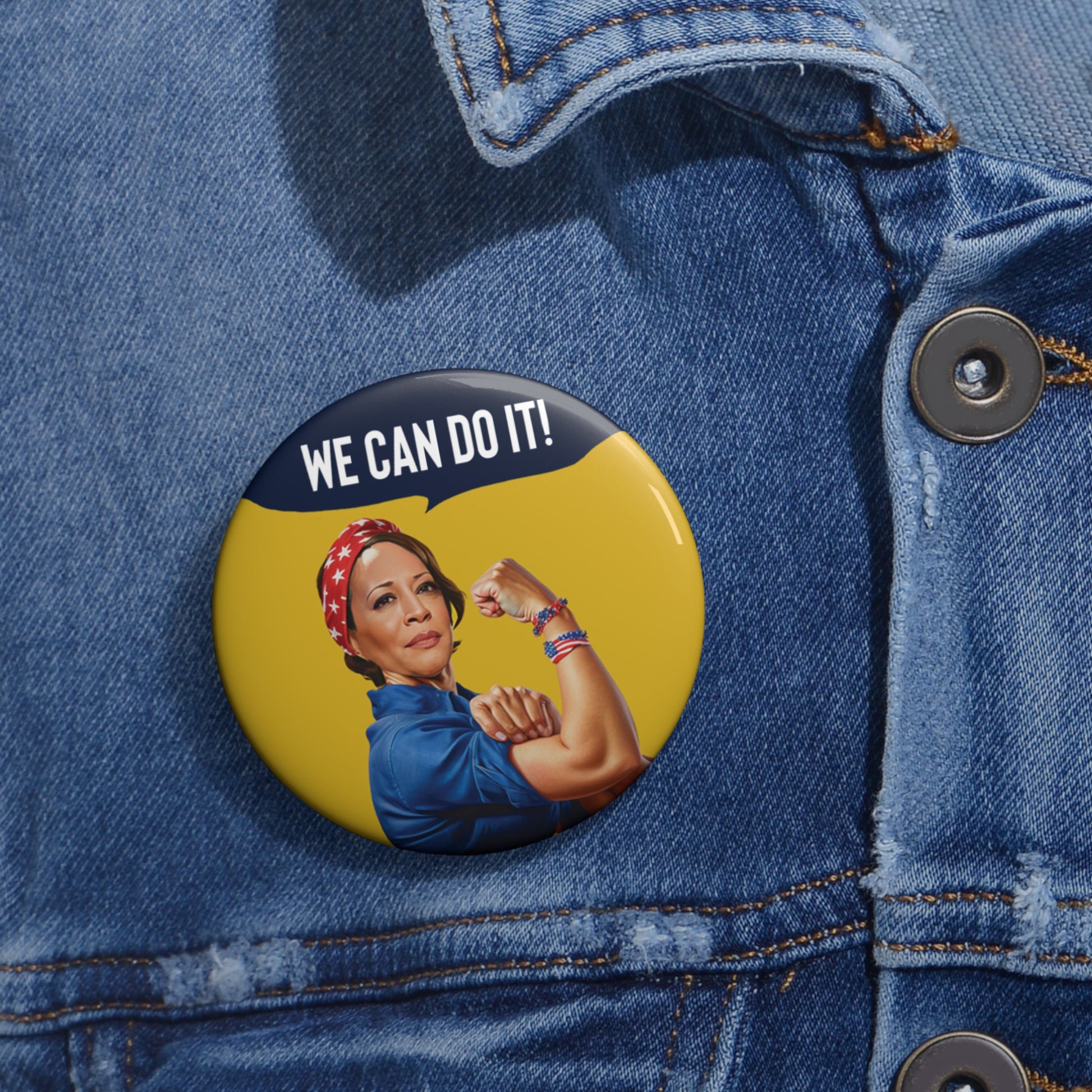 Proudly display your support for Kamala Harris with our vibrant "We Can Do It" campaign pin button. Perfect for rallies, events, or everyday wear, this pin button is a must-have for every Kamala supporter. 🎉📌